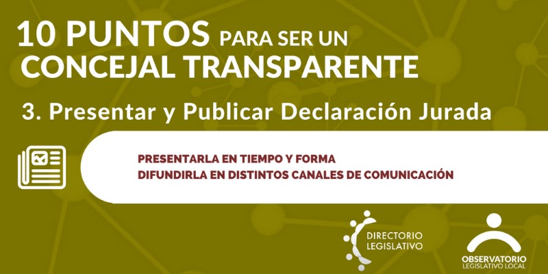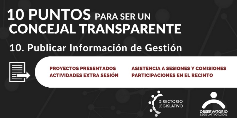 A nivel internacional se encuentran diversos documentos y estándares que hablan de la apertura parlamentaria necesaria, entendiendo que hay aspectos generales que toda institución legislativa, así como legisladores en particular, deberían cumplir. La Declaración de Transparencia Parlamentaria, elaborada en 2012, es un llamado a los Parlamentos del mundo, desde las organizaciones de monitoreo parlamentario, a generar un compromiso y responsabilidad en torno a la apertura y participación ciudadana. Así, contiene 4 pilares que van desde la promoción de la cultura de la transparencia, la publicación de todo tipo de información y facilitar el acceso a ella en caso de no estarlo, hasta digitalizar su información y hacerla accesible en formatos abiertos y reutilizables. Desde el Observatorio Legislativo Local, junto a la Fundación Directorio Legislativo identificamos 10 puntos claves que todo representante debería cumplir para ser considerado transparente y rendir cuentas a la ciudadanía.