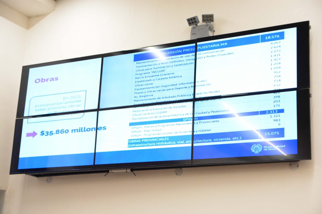 En el proyecto del presupuesto está prevista para el 2023 una inversión total de obras por 35.860 millones, que se desglosan de la siguiente manera: 18.576 millones asumidos por la Municipalidad de Rosario; 15.075 millones de pesos de obras provinciales en Rosario, y a cargo del Servicio Público de la Vivienda y Hábitat (SPVyH) 2.300 millones.